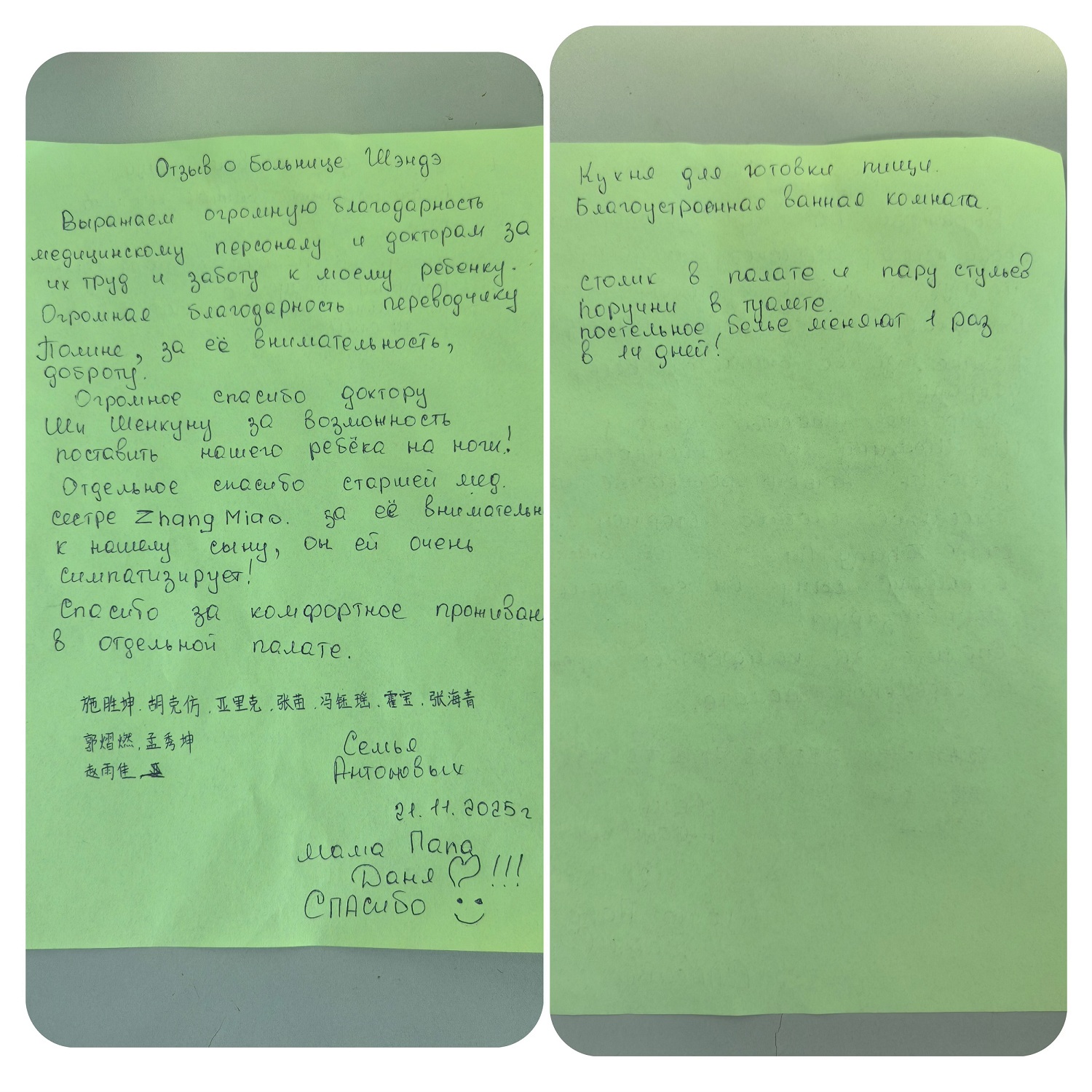 Напишите от руки благодарственное письмо в больницу, чтобы выразить теплоту и заботу о семье Аньтун во время госпитализации!